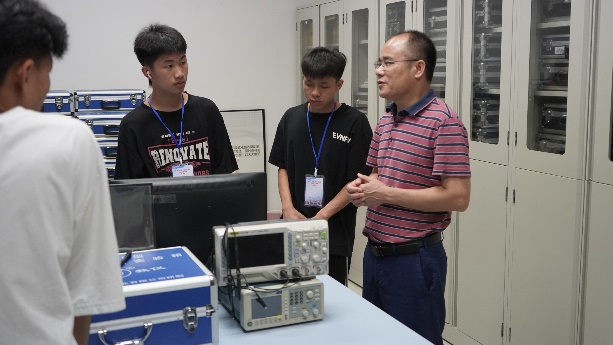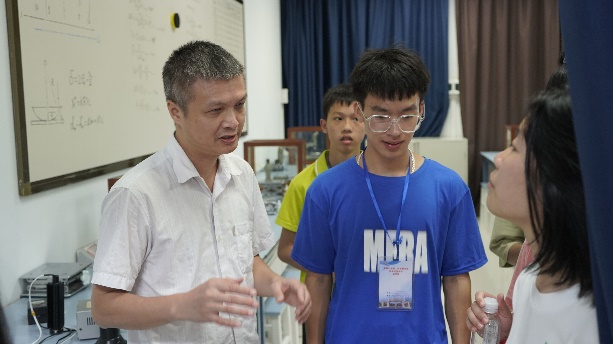 7月11日,那坡中学研学团的同学们先后参观了麻豆tv的洁净实验室、光学实验室等,面对从未见过的实验仪器,他们秉承求知之心,向实验室负责老师提出了自己的疑问,而老师们也都耐心地向他们讲解实验原理与仪器使用方法。