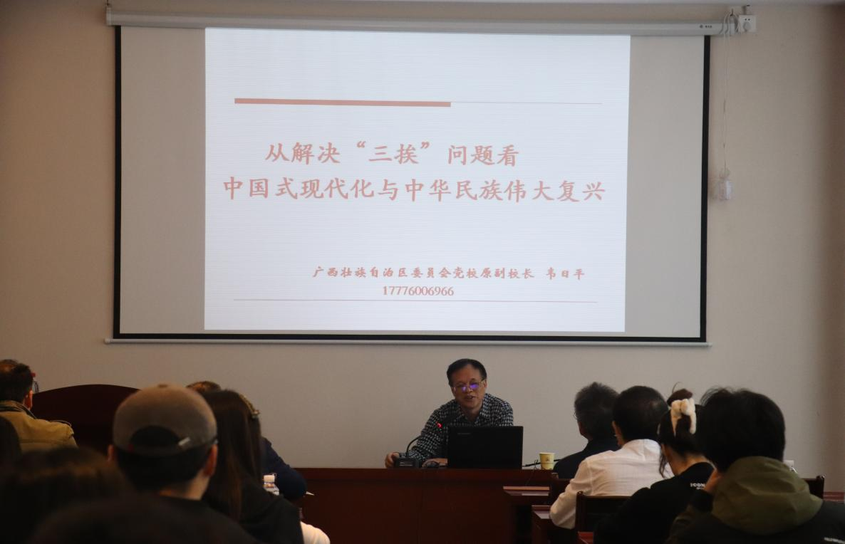 韦日平教授为党员同志们讲授了题为《从解决“三挨”问题看中国式现代化与中华民族伟大复兴》的党课。韦教授从解决“三挨”问题入手,回顾了中国共产党带领全国人民从解决挨打、挨饿、挨骂问题的历程,系统生动地诠释了中国共产党团结带领中国人民进行的一切奋斗、一切牺牲、一切创造,归结起来就是一个主题:实现中华民族伟大复兴。