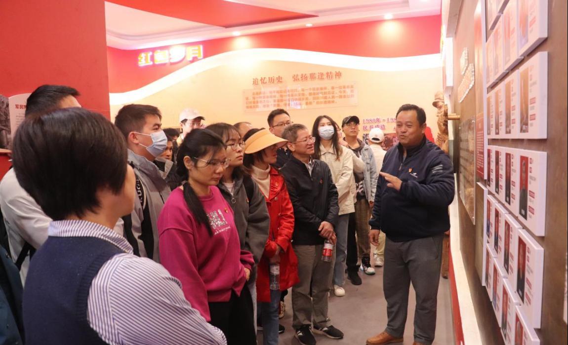 在爱店镇党委宣传委员及那逢屯干部的引领和讲解下,党员们先后参观了红色文化纪念馆、重走了战壕、防空洞遗址,近距离观看一幅幅图片、一件件文物,聆听那逢屯红色故事,了解作战老兵和那逢人民保家卫国戍守边疆的故事。