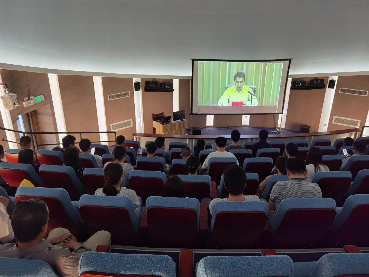 在九楼天象馆设立分会场,教职工、党支部委员在分会场通过网络收看直播。