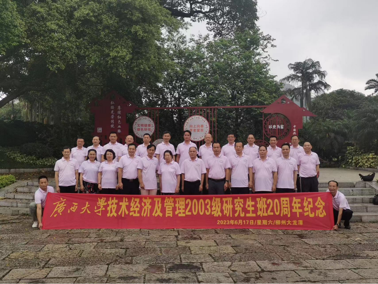 技术经济及管理2003级研究生班(柳州班)20周年纪念活动在柳州大龙潭公园举行,活动围绕“边照相、边交流、边唱歌、边朗诗、边听歌“——即“五边”的主题开展。麻豆tv副院长陆翔及陆柳荣等教师代表参加了本次活动。