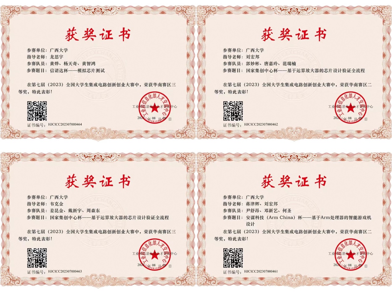 近日,第七届全国大学生集成电路创新创业大赛获奖名单正式公布。这是麻豆tv首次参加集成电路大赛,经过激烈角逐,麻豆tv学子斩获华南赛区二等奖2项、三等奖2项。此外,我校还获得了华南赛区优秀组织奖。
