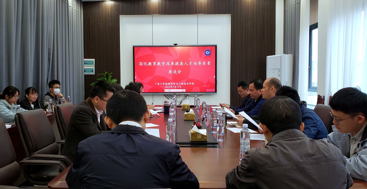 九楼天象厅会议室召开关于“深化教育教学改革 提高人才培养质量”座谈会。校友办副主任黄庶冰、各基层教学组织负责人、教师代表、学工组老师以及学生代表等30人参加本次座谈,会议由管永精副院长主持。