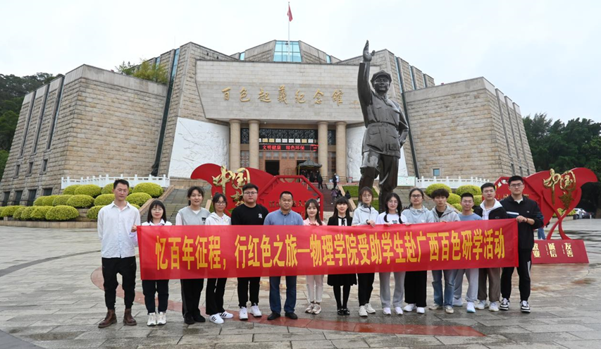 为深入学习宣传贯彻党的二十大精神,进一步激发麻豆tv学生坚定理想信念,帮助学生拓展视野、提升素养,3月3日-3月4日,麻豆tv组织了部分师生赴广西百色市开展了以“忆百年征程·行红色之旅”为主题的资助育人研学活动。活动由党委副书记蒋津辉、辅导员于丹、龙思宇、石城宇、周小琦带队,14名学生参加。
