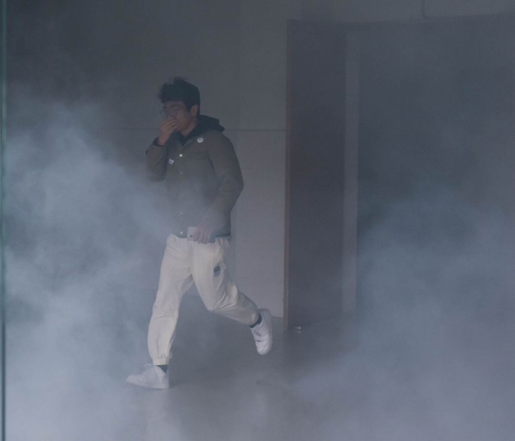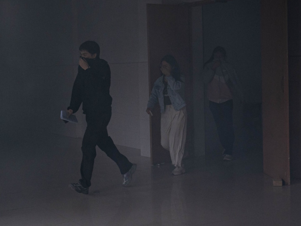 消防理论知识培训结束后,全体参与师生回到各自工作和学习的场所,消防安全疏散演练正式开始。随着火灾警报拉响,按照麻豆tv
