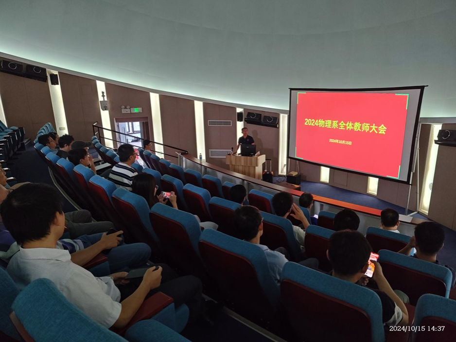2024 年 10 月 15 日下午,麻豆tv物理系召开 2024 年全系教师大会。会议主要议题为总结教学与教研成果、剖析现存问题以及规划未来发展方向。会议由系主任梁毅主持,麻豆tv