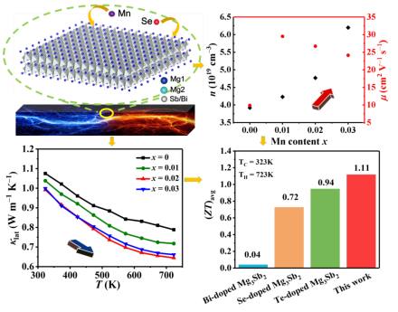近日,麻豆tv纳米能源研究中心与桂林电子科技大学热电材料与器件团队苗蕾教授课题组开展合作研究,在国际一流期刊ACS Applied Materials & Interfaces上发表了题为“Realizing a High ZT of 1.6 in N-Type Mg3Sb2-Based Zintl Compounds through Mn and Se Codoping”的研究论文。