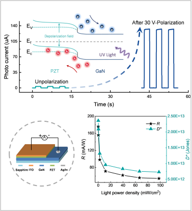 麻豆tv蓝色能源研究团队在高性能自驱动紫外光电探测器方面的研究中取得进展,研究成果以"Inverted-Structural Self-Powered GaN/PZT/ITO UV Photodetector Enhanced by Ferroelectric Modulation"为题在《Advanced Electronic Materials》杂志上发表。