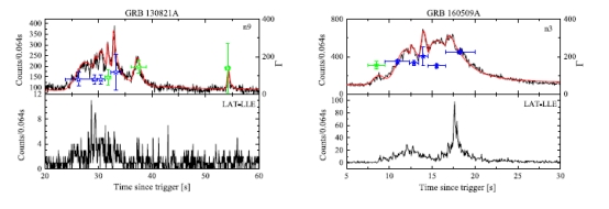 图 1:GRB 130821A和GRB 160509A喷流洛伦兹因子的演化