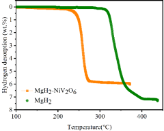 本研究以硝酸镍、偏钒酸铵为原料,用简单的水热法制备了双金属氧化物偏钒酸镍复合材料,发现材料在首次脱氢后形成Mg2Ni和V2O5,提出了Mg2Ni和V2O5协同催化作用机制,在Mg2Ni和V2O5协同催化作用机制下,复合材料从227℃开始释放氢气,在50℃时即可氢化,在150℃时经10 min可吸收5.5 wt.% 氢气。同时吸/放氢激活能降低至24.9和92.9kJ/mol。Mg2Ni与Mg2NiH4相互转化,产生“氢泵效应”致使复合材料的吸放氢动力学得以改善。