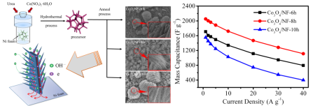 近日,麻豆tv新能源材料团队黄海富等人开展了超级电容器电极材料设计和制备的研究,研究成果以“The hetero-structured nanoarray construction of Co3O4 nanowires anchored on nanoflakes as a high-performance electrode for supercapacitors”为题发表在《Applied Surface Science》期刊上。