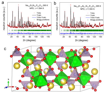 (c)Na3.5Zr1.9Al0.1Si2.4P0.6O12的晶体结构示意图。