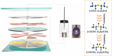 近日,麻豆tv纳米能源研究中心兼职教授李舟团队开展了摩擦纳米发电机激励微等离子体用于化学战剂净化取的研究,研究成果以"Chemical warfare agents decontamination via air mircoplasma excited by a triboelectric nanogenerator"为题发表在《Nano Energy》期刊上。