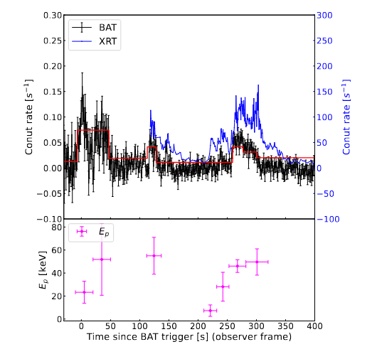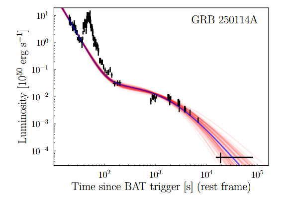 图一:GRB 250114A的瞬时辐射光变曲线以及X射线光变曲线
